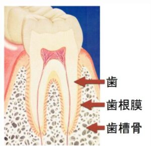 転んで歯をぶつけたり、折れたり、ひびが入るなど、外から強い力がかかると、歯根膜の一部が断裂して炎症を起こします。