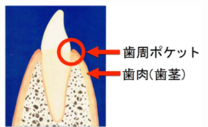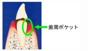 歯の周りには歯周ポケットと呼ばれる溝があります。
